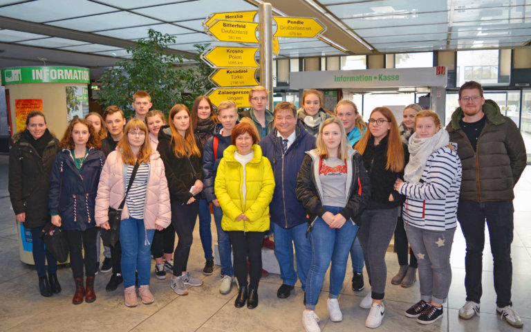Schülerinnen und Schüler vom Kopernikus Lizeum Krosno haben für eine Woche die Willy-Brandt-Gesamtschule in Marl besucht. Dafür reisten sie aus dem 1055 Kilometer entfernten Krosno im polnischen Vorkarpatenland an. Bürgermeister…