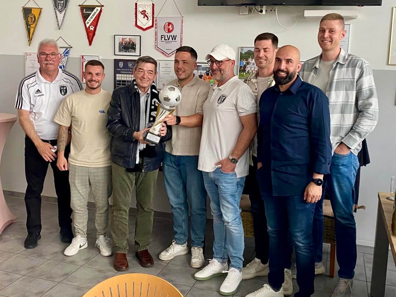 Der FC Marl 2011 spielte eine tolle Saison und wurde ungefährdet Meister der Bezirksliga 9. Damit verbunden ist der Aufstieg in die Landesliga. Damit ist der FC Marl der aktuell höchstklassige Fußballclub der Stadt Marl. Grund genug für den Vereinsvorstand, zu einer Aufstiegsfeier ins schmucke Vereinsheim an der Hagenstraße einzuladen. FCM-Vereinsvorsitzender Claus Lanczek konnte neben dem Meisterteam um Kapitän Kim Yannik Völkel und den Trainern eine Reihe von Gästen begrüßen.
