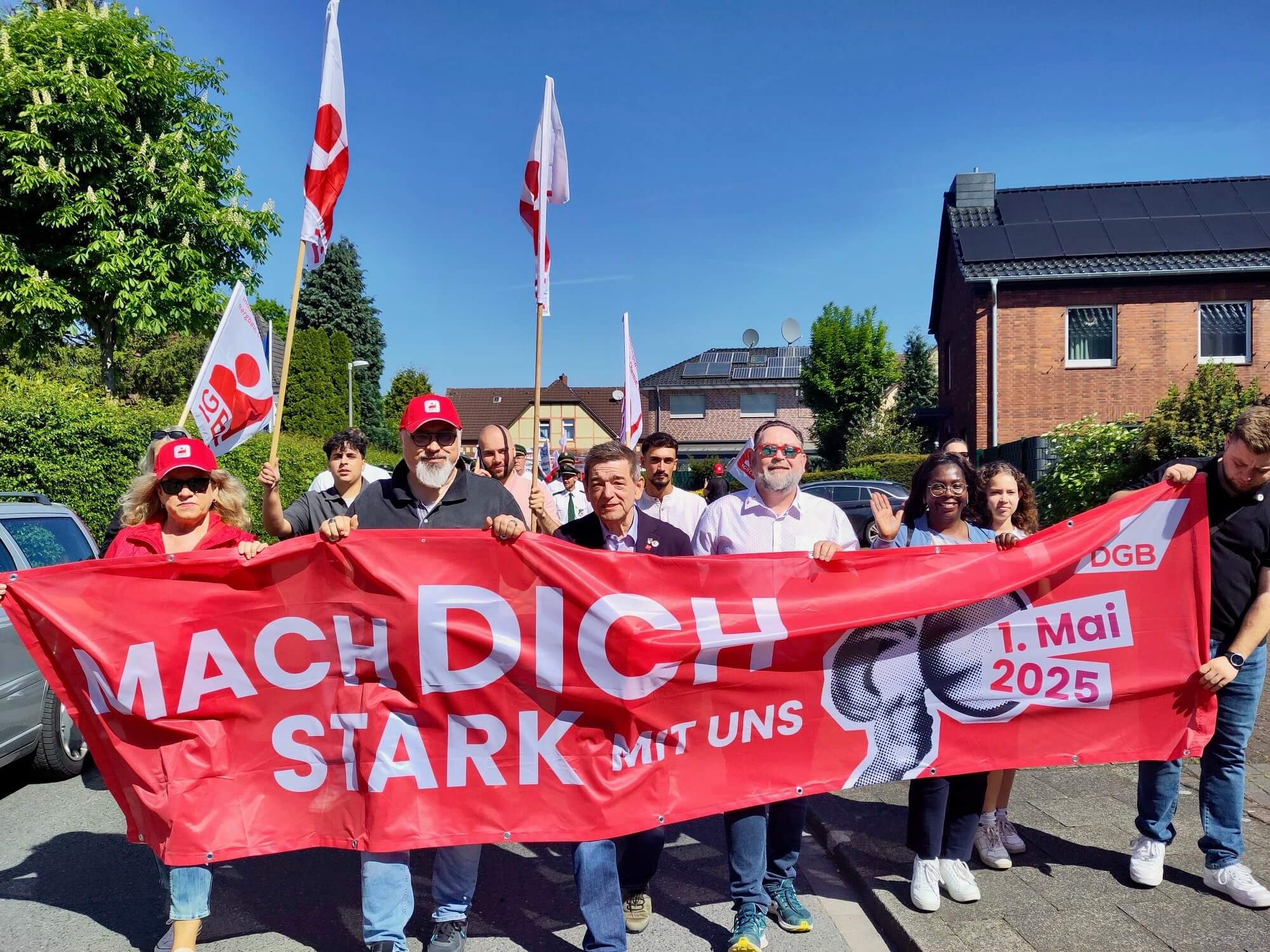 Redner des heutigen Tages waren Rebecca Liebig (Verdi), Nico Vassiliadis (DBG Marl), Frank Sarau (BRV Oxeno), Fatih Akyüz und Lim Emily Beckmann (JAV Evonik), Betül Capci (JAV Oxeno). Als Bürgermeister habe ich traditionell ein Grußwort gehalten. Zentral war in diesem Jahr besonders die Forderung nach einem Tariftreuegesetz für NRW. Die Bundespolitik, die aktuellen Tarifverhandlungen und die wirtschaftliche und städtebauliche Entwicklung in Marl haben thematisch die Impulse gesetzt.