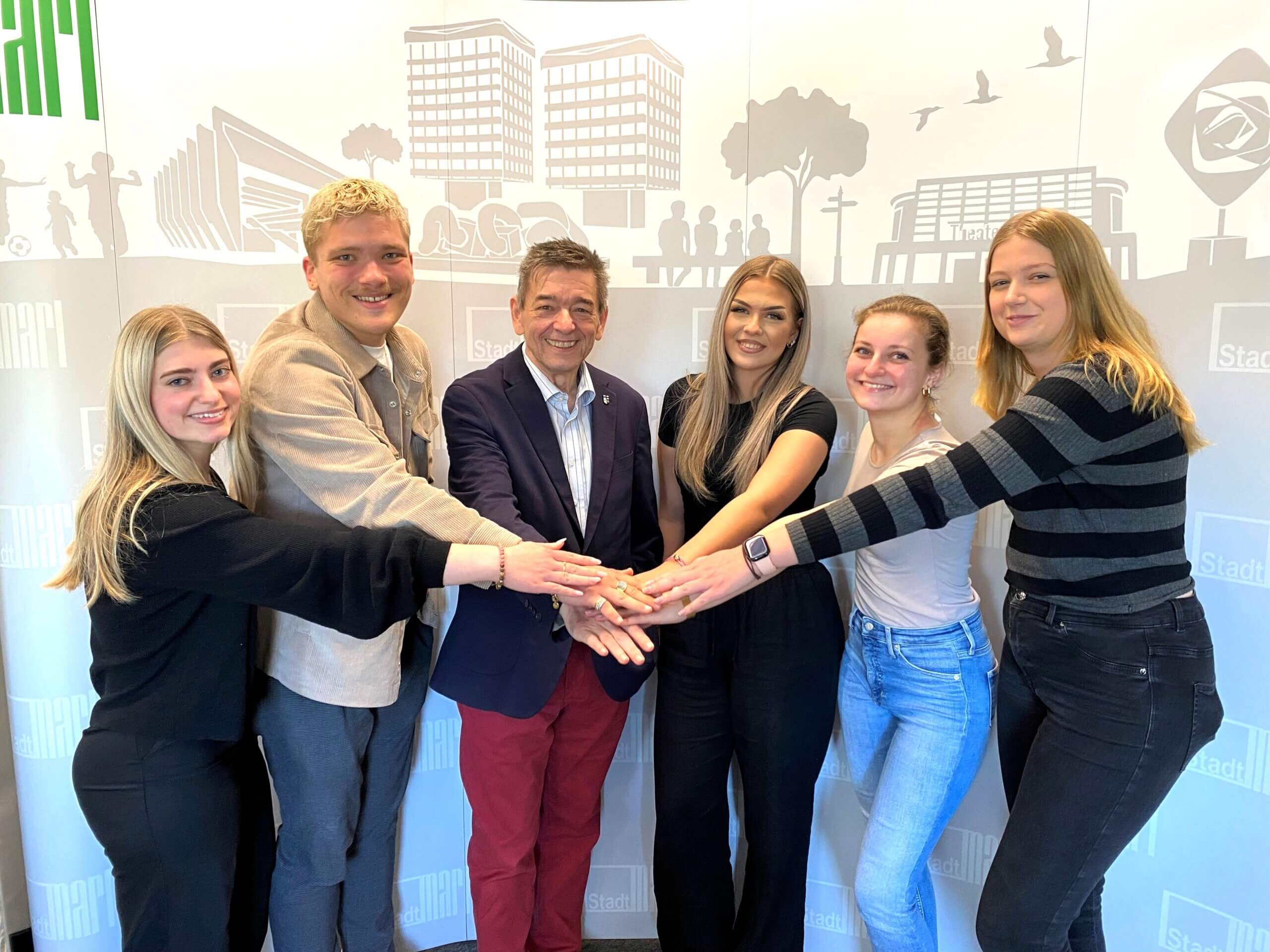 Zum Kennenlerngespräch waren jetzt die Mitarbeiterinnen und Mitarbeiter städtischen der Jugend- und Ausbildungsvertretung JAV bei Bürgermeister Werner Arndt zu Gast. Nach den jüngsten Wahlen wurde das Gremium in der Verwaltung der Stadt neu besetzt. Für die aktuelle Legislaturperiode bekleidet Marleen Bugsel das Amt der Vorsitzenden, ihr Stellvertreter ist Justin Niemierza. Ebenfalls zum Vorstand gehören Schriftführerin Sarah Fischer, Melissa Borutta und Annika Schumacher.