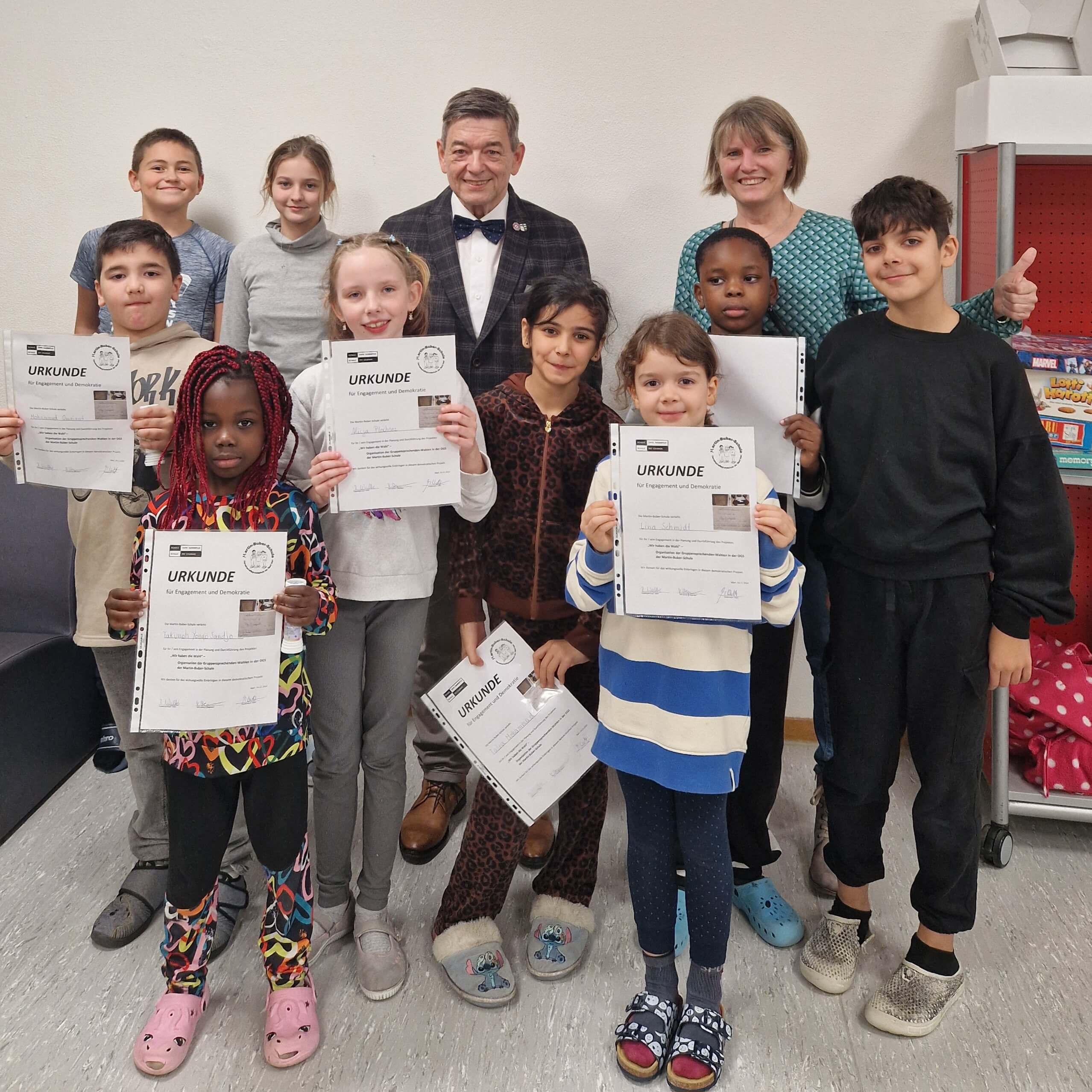 Zur Wahlparty des Organisationsteams besuchte ich als Bürgermeister gerne die Kinder, habe ihre zahlreichen Fragen zum Thema Wahlen beantwortet und anschließend Urkunden für besonderes, demokratisches Engagement verliehen. Gut gemacht Kinder! Ihr habt viel gelernt über die Demokratie. Ein dickes Lob geht an das engagierte OGS-Team um Regina Walter – weiter so!