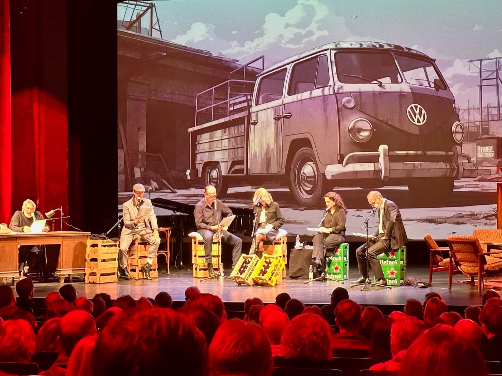 Im voll besetzten Theater Marl gab es gestern etwas ganz besonderes: ein szenische Lesung mit viel Musik und bekannten Schauspielern wie Herbert Knaup, Martin Brambach, Christine Sommer, Hendrik Heutmann und Rana Farahan. Auch Christian Brückner, vielen bekannt als deutsche Stimme von Hollywood-Star Robert De Niro, war dabei. Buch und Regie: Maik Große Lochtmann.