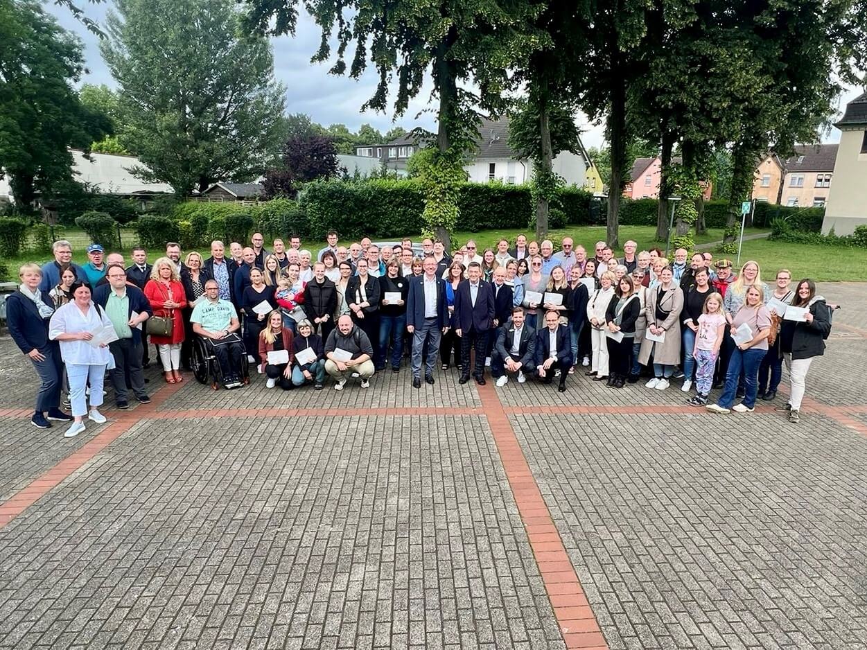 Der Empfang fand im Gemeindehaus der Pauluskirche (esm) an der Römerstraße in Marl-Hüls statt. Die Evangelische Stadtkirchengemeinde erhielt eine Spende für die Aktion „Wärmewinter“. Ein Dankeschön an die fleißigen Helfer:innen der Gemeinde für die nette Bewirtung mit Kaffee, kühlen Getränke und Kuchen!