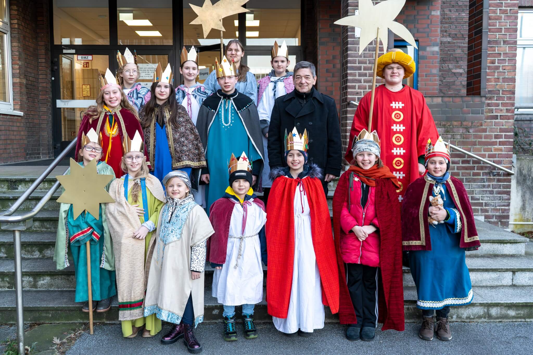 Mit goldenen Kronen, bunten Umhängen und einer großen Portion Engagement zogen die Sternsinger durch das Marler Stadtgebiet. Unermüdlich segneten sie Haus um Haus und sammelten Spendengelder für ein Hilfsprojekt. Auch das Stadthaus und das Büro des Bürgermeisters trägt jetzt den Segenspruch „Christum mansionem benedicat“ – „Christus, segne dieses Haus“. Gerne habe ich als Bürgermeister eine Delegation der fleißigen Sternsinger zu Kakao und Keksen eingeladen.